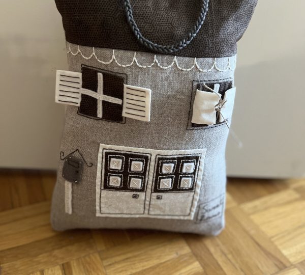 c’est du boulot car il faut couper les pièces de tissu, broder, appliquer, coudre le tout et que le rendu soit parfait et y insérer du poids à l’intérieur pour que cela cale bien la porte… mais j’y suis arrivée et le final est super joli